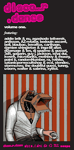 Danny Dark Records is very proud to announce that Walter & Sabrina have been chosen to appear on "disco_r.dance vol. 1". PRESS RELEASE from Pete Stormcrow + Dancon1: "RELEASE DATE: November 2006 November 2006 will see the debut release from disco_r.dance, a new label set up by Pete Stormcrow + Dancon1. Pete Stormcrow + Dancon1 have been responsible for promoting free electronica events, Rehabilitation, Moonpalace and disco_r.dance, for over 6 years and over that time have worked with countless artists to present many memorable nights... 32 tracks spread over two discs, this compilation will feature over 2 hours of all-new and exclusive tracks and mixes... We are very proud of all the tracks presented on this release, but highlights might include: a brand new track from Tunng, plus Expanding Records' Stendec's remix of their recent single Jenny Again....new material from irritants Carthage an exclusive track from The Doubtful Guest, who has her debut 12" release on Planet Mu ready to drop on the same day as this compilation..... the first UK airing of the hip-hop bricolage of Japan's Satanicpornocultshop.... the first results of Ardisson's new techno project Two Slender Cats.... Artwork incorporates five interchangable sleeves with specially commissioned designs from: Ugh (Satanicpornocultshop), Raoul Sinier (Ra), Wet Paint Projects, Mole Design and Stephen Moore (Walter & Sabrina) Pete Stormcrow + Dancon1 curate this cd compilation with scant regard to the artistic restraints of genre-specifics, preferring instead to highlight a wide-ranging and stylistically varied selection of music/artists that they love... Tracklist: DISC 1: 01. tunng little king [feat. summit] 02. carthage i never knew 03. ecd kakke no tonkachi [satanicpornocultshop remix] 04. random number wake up with slide 05. ra petit gilet [remix] 06. agaskodo teliverek blood club [version] 07. stormcrow mousseroom 08. bedouin ascent hearts and lands 09. two slender cats (aka ardisson) when are you bringing more food? 10. bell eat the evidence [disco_r.dance mix] 11. mothboy bluebirds [feat. moxey] 12. 3D!T blasphlegmy 13. walter & sabrina tiny small 14. rothko breaking the fall 15. addie brik i we [eu remix] 16, az-rotator neviko 17. guy j. jackson the man who was kind of an ark 18. xylitol ye-ye electronique DISC 2: 01. isnaj dui dulc improv 02. blaubac weutze 03. point b the contortionist 04. dDamage [feat. tes] sign my name [part 2] 05. microtanks trond 06. damien shingleton + inga-lill aker as is 07. dj spazmo vs. gusset 99 high hos don't make it right 08. the doubtful guest widouted 09. gagarin onomo 10. satanicpornocultshop see mee m paz 11. kwerk kiss my rave 12. u-born e-skater 13. bovaflux nunnying 14. tunng jenny again [stendec's non-contemporary vocal acoustic remix]"